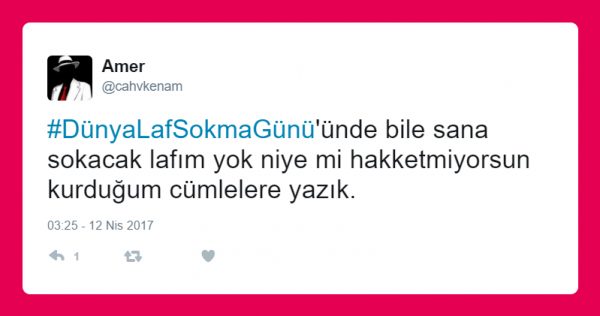 Bugün Twitter’da  hastagı TT oldu. Sebebi ise birilerinin bugünü dünya laf sokma günü ilan etmesi. Hal böyle olunca insanlar Twitter’da laf sokma üzerine ince çalışmalar yapmaya başladı. O gönderilerden bazılarını sizler için derledik, iyi eğlenceler.